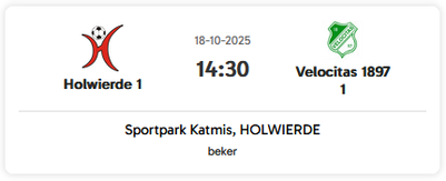 "Op sportpark Katmis ontvangt Holwierde een sterke tegenstander in eersteklasser Velocitas. De Stadjers wisten samen met plaatsgenoot Oranje Nassau tot de knockout-fase door te dringen." (Eemsmondsport)