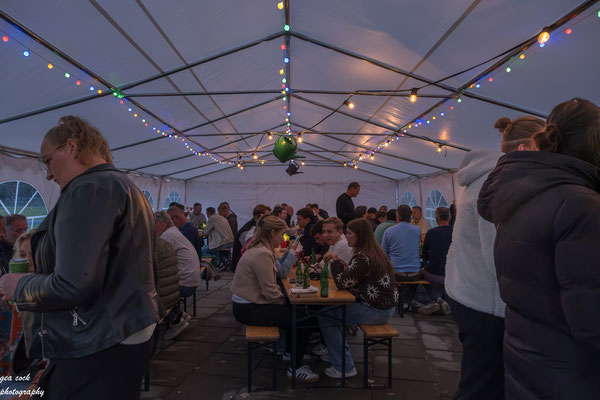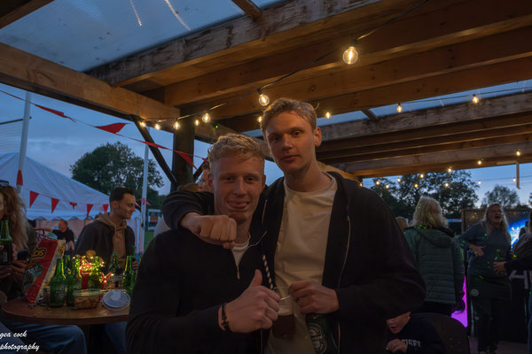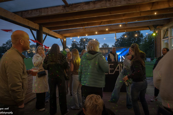 Na het gieter gooien barstte het grote avondfeest los. Onder de muziek van dj Léaux en later nog een spontaan gastoptreden van Arjan de Weerdt gingen de voetjes van de vloer en was er na afloop nog de traditionele ‘afterparty’ bij Café ‘t Keilhoes, waar de frituurpan nog een paar overuren draaide.