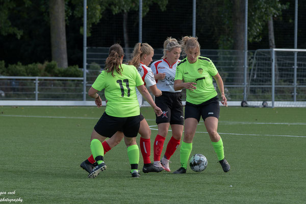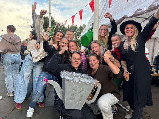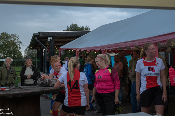 Bij de dames namen alle teams het eenmaal tegen elkaar op en mocht de winnaar van de poule zichzelf automatisch de winnaar van het toernooi noemen. De dames van Farmsum bekroonden zichzelf tot de winnaressen en haalden met luid gezang op hun favoriete nummer ‘Baila de Gasolina’ de trofee op. Holwierde 18+ werd tweede en de dames van PHC 30+ werden verdienstelijk vierde.
