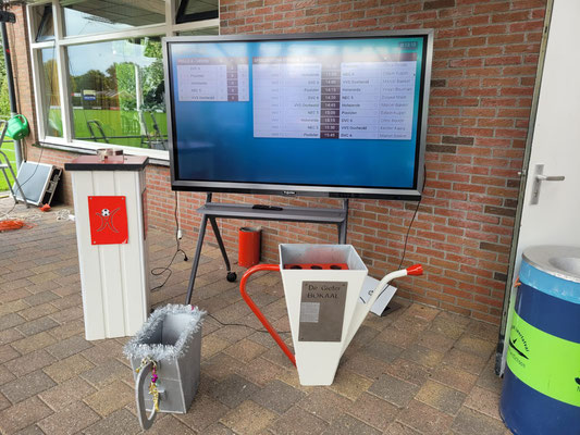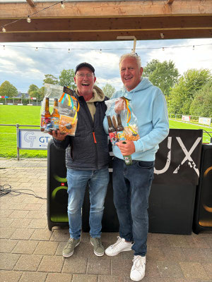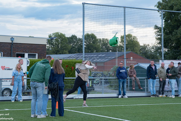 Na de prijsuitreiking was het tijd voor het jaarlijkse gieter gooien. Iedere deelnemer betaalde een muntje om te mogen gooien, en de winnaar kreeg de helft van alle ingelegde munten. Bij de heren won ‘gietergooi-specialist’ Martin Brouwer voor het tweede jaar op rij. Bij de dames won Suus Hak.